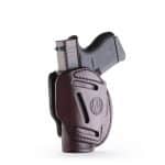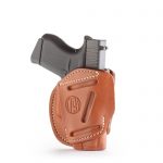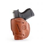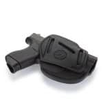 Our 3 Way Multi-Fit Outside Waistband Leather Belt Holster, conveniently referred to as the 3-way, is the ideal balance of quality protection and comfort. Our 3-way provides complete concealment and convenience, as this holster was designed with consideration to both the protection of your firearm and comfort for you. The 3-way holster allows you to position your firearm on your belt in Vertical, Horizontal, and Cross-draw cants that accommodate your particular carry style. Because this is an ambidextrous holster, both Right and Left-Handed carrying are possible in just one holster. This means that the 3-way can handle all three cant positions anywhere on your belt. This is especially helpful for wearing a 6 o’clock position on the belt and ensuring an easier draw of your firearm for ease and comfort on your shoulder.