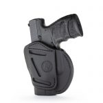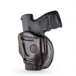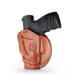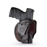 Our 3 Way Multi-Fit Outside Waistband Leather Belt Holster, conveniently referred to as the 3-way, is the ideal balance of quality protection, and comfort. Our 3-way provides complete concealment and convenience, as this holster was designed with consideration to both the protection of your firearm and comfort for you. The 3-way holster allows you to position your firearm on your belt in Vertical, Horizontal, and Cross-draw cants that accommodate your particular carry style. Because this is an ambidextrous holster, both Right and Left-Handed carrying is possible in just one holster. This means that the 3-way can handle all three cant positions anywhere on your belt. This is especially helpful for wearing a 6 o’clock position on the belt and ensuring an easier draw of your firearm for ease and comfort on your shoulder.