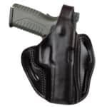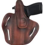 The BHX delivers incredible retention and superior leather and build quality. It also includes 3 belt loops that allow you to carry two distinct positions. The FBI-Cant allows for a quick reaction draw of your weapon and the Back-Cant is intended for quicker pickup of your target, especially useful when sitting or driving. The BHX is a high-end leather design that is molded and contoured for your pistol and accommodates taller Suppressor Sights, yet is comfortable against the body due to the handcrafted premium 100% Certified American, Heavy Native Steerhide leather. This holsters interior is hand-finished to help protect the bluing of your pistol and includes design enhancements like a reliable Thumb Break, multi-cant positioning options on the belt, double stitching for reinforced life-time enjoyment, and more barrel room for higher front-sights.