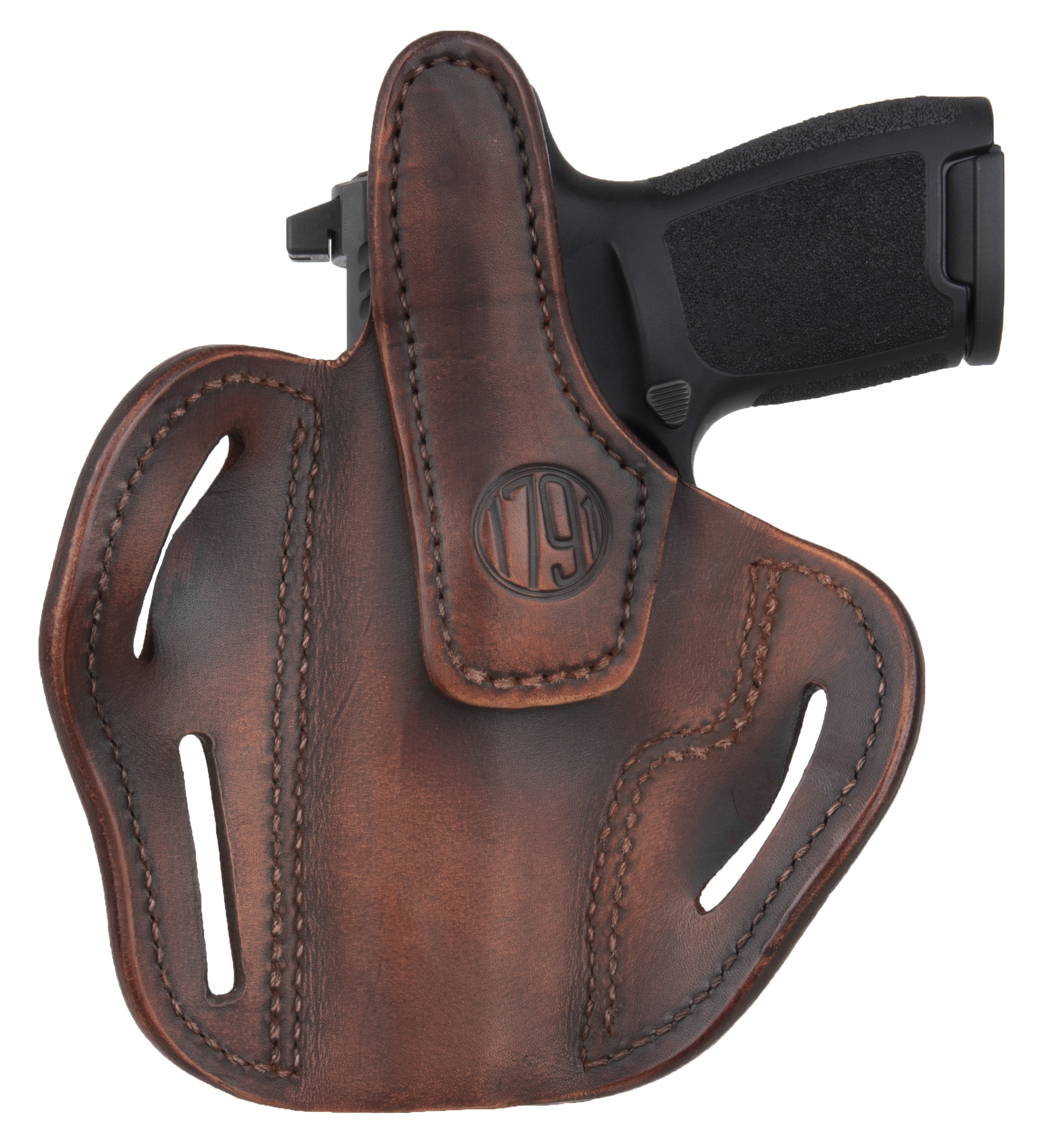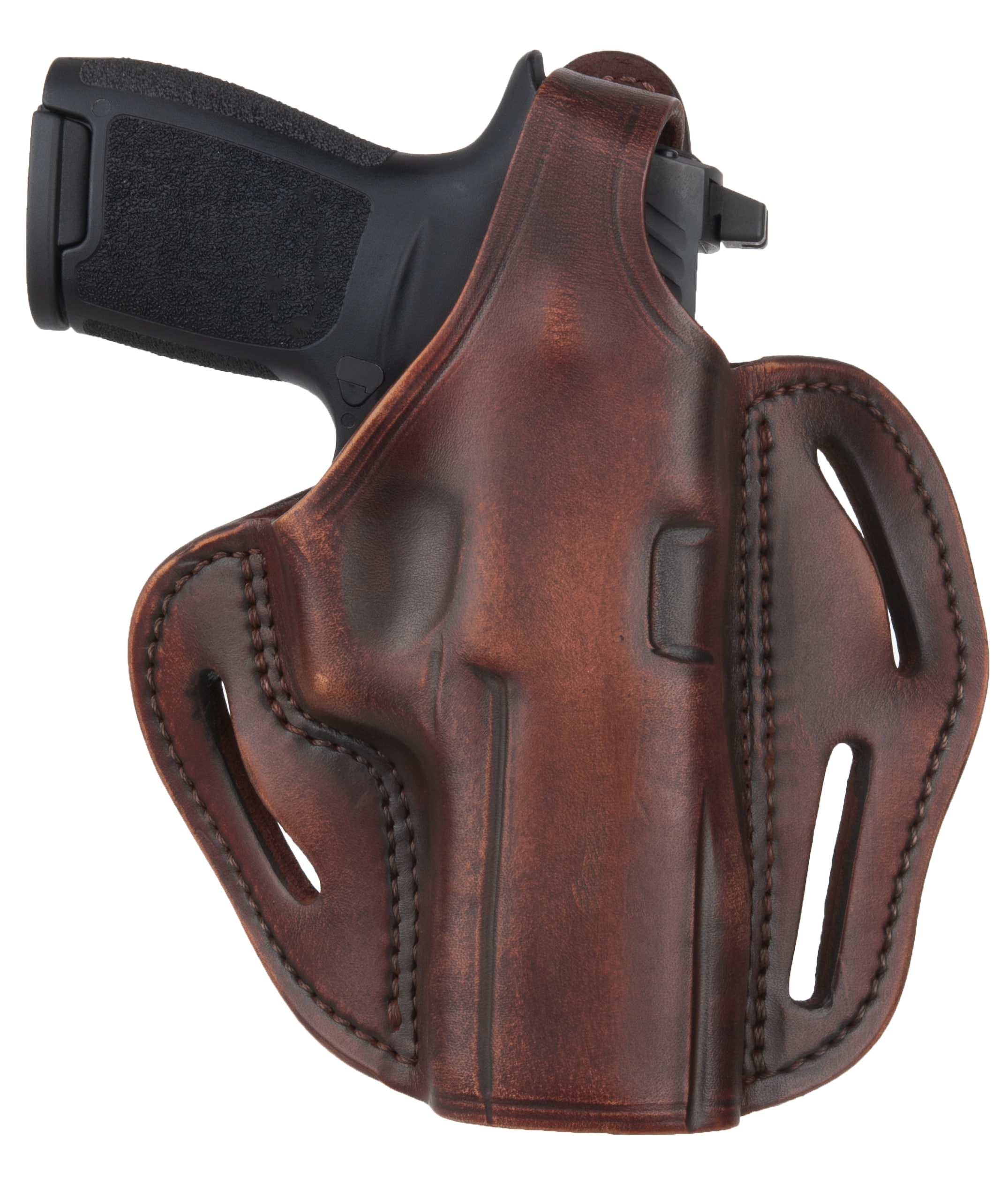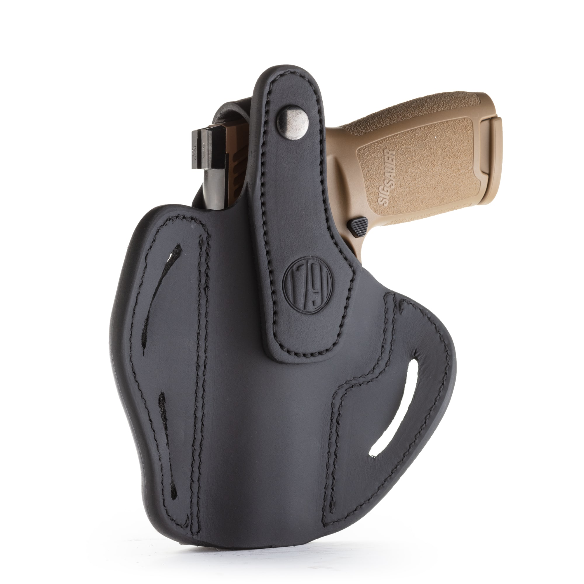 The BHX delivers incredible retention and superior leather and build quality. It also includes 3 belt loops that allow you to carry two distinct positions. The FBI-Cant allows for a quick reaction draw of your weapon and the Back-Cant is intended for quicker pickup of your target, especially useful when sitting or driving. The BHX is a high-end leather design that is molded and contoured for your pistol and accommodates taller Suppressor Sights, yet is comfortable against the body due to the handcrafted premium 100% Certified American, Heavy Native Steerhide leather. This holsters interior is hand-finished to help protect the bluing of your pistol and includes design enhancements like a reliable Thumb Break, multi-cant positioning options on the belt, double stitching for reinforced life-time enjoyment, and more barrel room for higher front-sights.