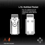 - Multitool Pocket: Fits tools up to 4.5″ long and up to 1.6″ wide including Heavy Duty Leatherman Super Tool 300, Surge, OHT, MUT | Gerber Truss, Multi-Plier 800, Splice, Vise, Center-Drive Plus | SOG Poweracess, Flash MT and similar size tools.