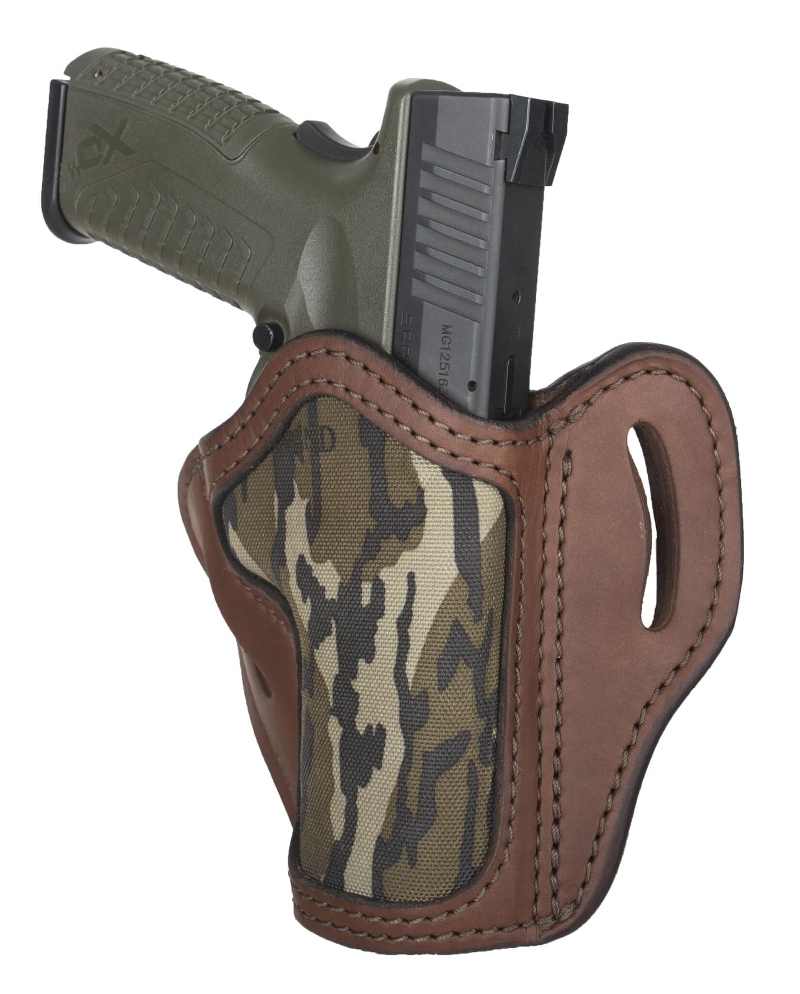 This Mossy Oak Open Top Multi-Fit Belt Holster, conveniently referred to as the MOBH2.4, offers excellent retention for a wide range of firearms. Focusing on the full frame firearms ranging from 4″ to 5″. The BH2.4 is designed to provide incredible retention while allowing a smooth an unencumbered draw. The BH2.4 has become a favorite for law-enforcement officials and off-duty military, with its ability to carry the M17 and M9’s of the world.
